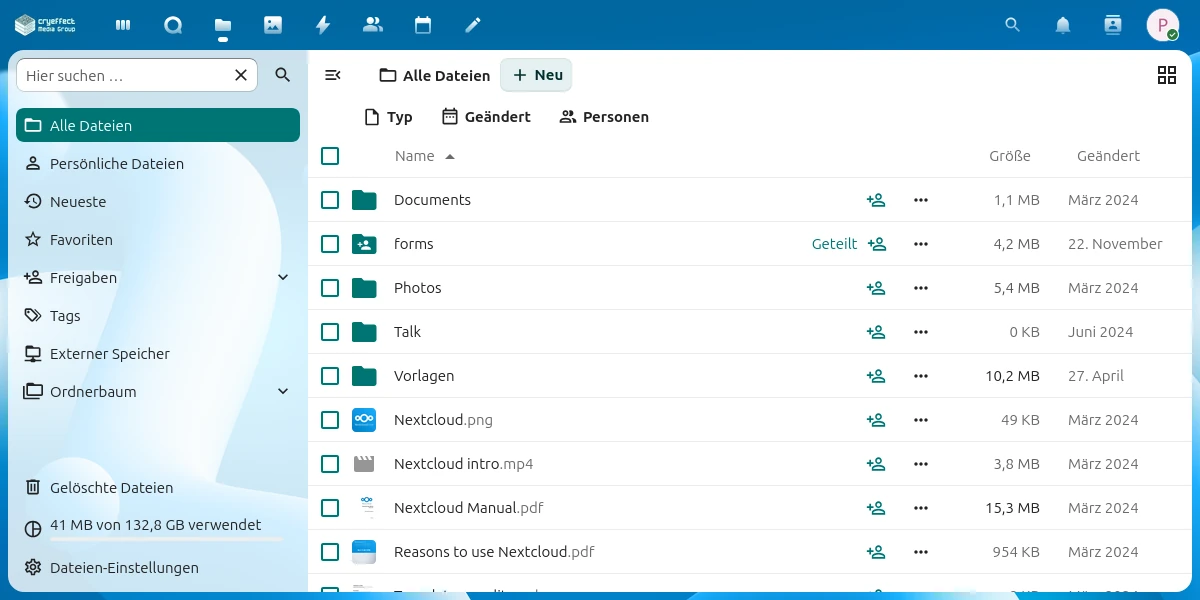 Your cloud instance can be expanded via apps — often without extra cost. Need more storage? No problem. You can book virtually any amount and distribute it across users.