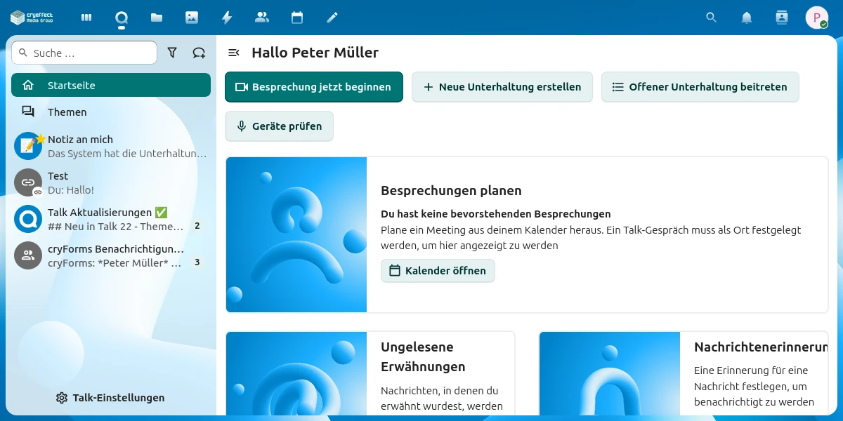 Yes. The Nextcloud Talk app is available for all major systems and works seamlessly with your cloud — including chat and video conferencing.